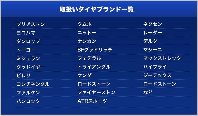 当店では、高品質・高性能タイヤを特別価格にて販売しております。